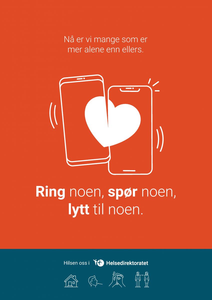 Mental Helses gratis døgnåpne telefontjeneste for alle som trenger noen å snakke med. Du kan være anonym og de har taushetsplikt. (Telefon er åpen hele døgnet, alle dager, året rundt.)