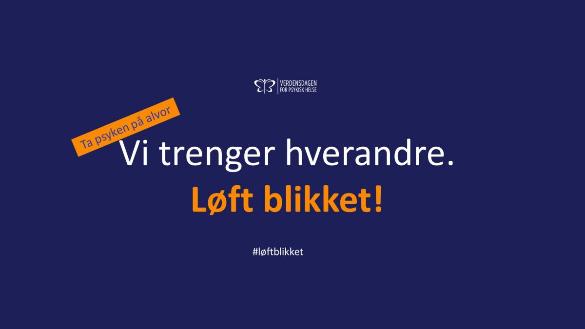 10. oktober markeres verdensdagen for psykisk helse. Årets slagord er: Vi trenger hverandre. Løft blikket! Vi kan alle gjøre en forskjell og vi trenger alle å bli sett. #løftblikket