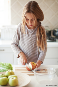 Det er lurt å lære barnet hvordan man bruker en skarp kniv og velge riktig fjøl.