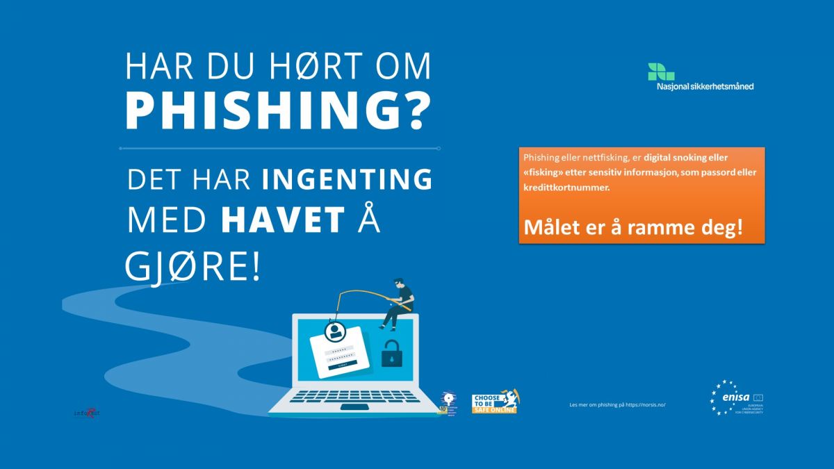 Phishing, eller nettfisking, handler om at noen vil lure fra deg personlige opplysninger. Ofte ved å få deg til å gå inn på en falsk side og oppgi informasjon. Slik informasjon kan for eksempel være brukernavn, passord, e-postadresse, telefonnummer eller annen personlig informasjon.