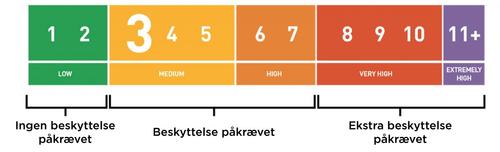 I Norge er UV-indeksen høyest 1-2 på en vinterdag (lav intensitet) og høyest 6-7 (høy intensitet) på en sommerdag. Når UV-indeksen er 3 eller mer anbefaler Kreftforeningen at du beskytter deg. Befinner du deg i områder hvor UV-indeksen er 8 eller høyere er det nødvendig med ekstra beskyttelse.